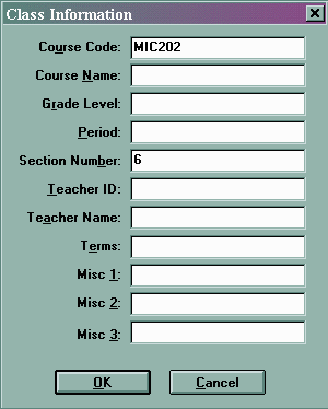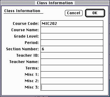 In order to take advantage of Basmati's WSIPC integration, it is very important that you enter the course code and section number correctly. Even if you've imported student data from WSIPC, you must make certain that this data appears as suggested in the Preparing Grade Machine for Basmati document.